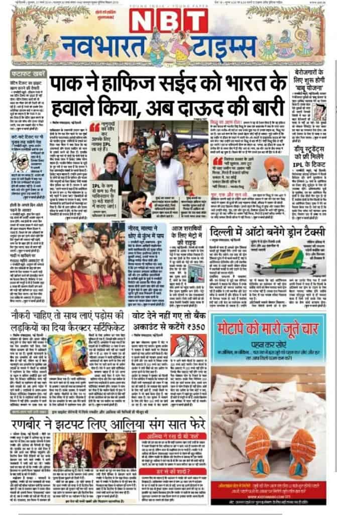 Lok Mat, a Marathi daily has also published the same piece, which ends with a clarification identical to that given in NavBharat Times, saying, “बुरा न मानो होली है”. It also may be noted that a full page of fictional news reports and advertisements was published by the daily with a disclaimer below that said, “All the news and advertisements on this page are fictional”. For instance, a headline of front-page news report said, “Pakistan has handed over Hafiz Saeed to India, next-in-line is Dawood.”