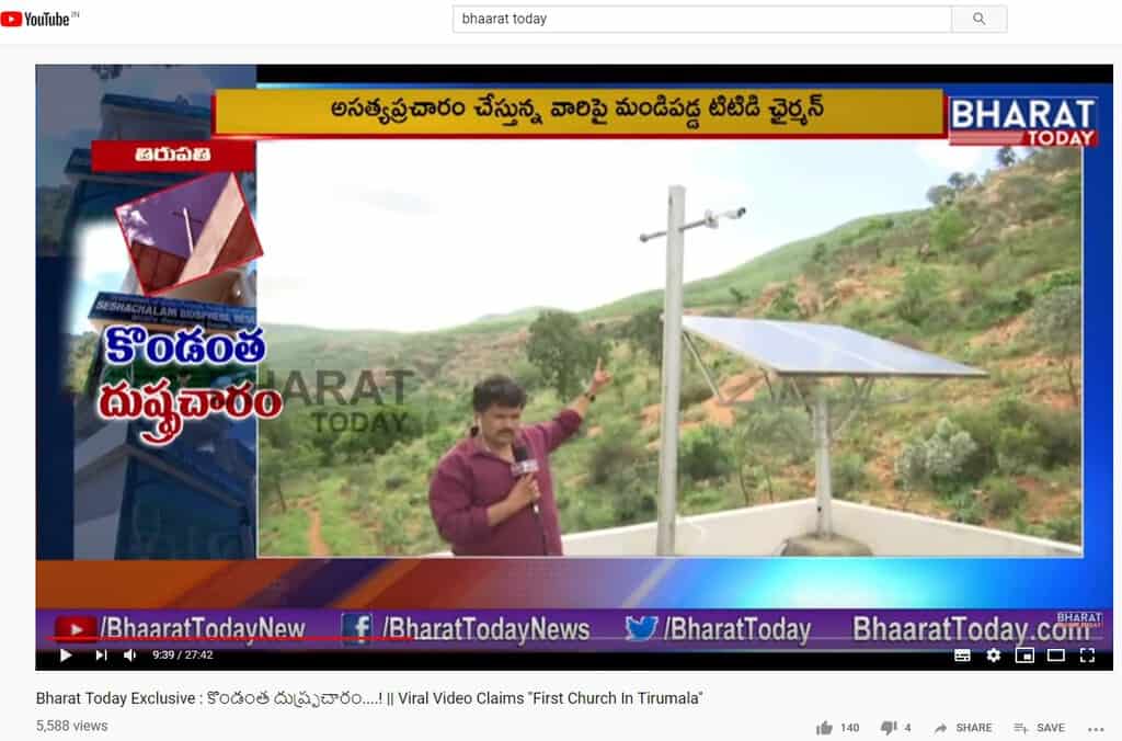 The building atop the hill is not a church but an office of Seshachalam Biosphere Reserve under the government of Andhra Pradesh. A cross visible on top of the building isn’t a Christian cross but a pole with CCTV cameras. A ground report by Telugu media outlet Bharat Today debunks the false social media claims.
