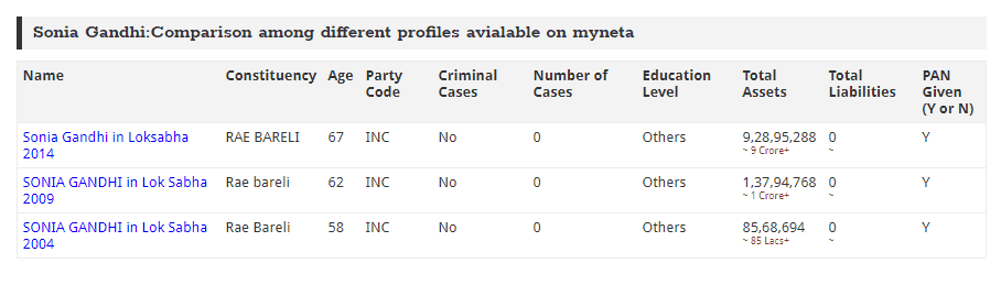 The other source mentioned by Business Insider was ‘National Election Watch,’ claiming that it put Sonia Gandhi’s net worth at US$200,000 (approximately Rs 1.37 crore in 2012).