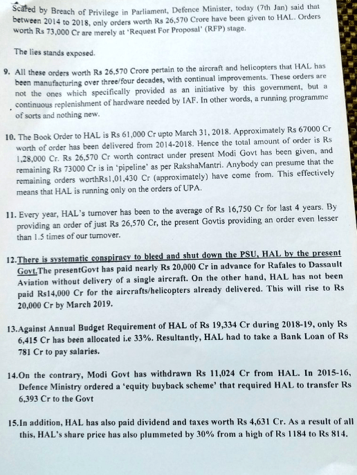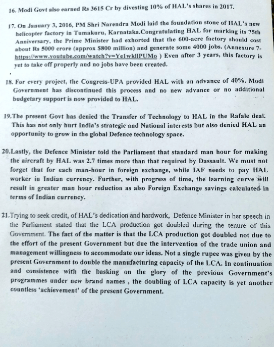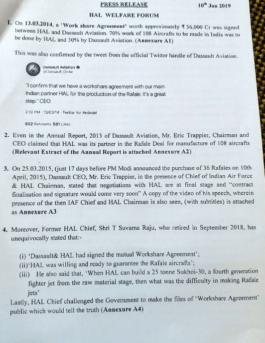 In a detailed press statement, the HAL employees underlined that Defence Minister Nirmala Sitharaman is attempting to build a false narrative of the PSU being incapable of building Rafale aircraft or refusing to give guarantee for the manufactured Rafale aircraft purely with a view to mislead the nation. They also thanked Congress president Rahul Gandhi for raising the issue in Parliament.