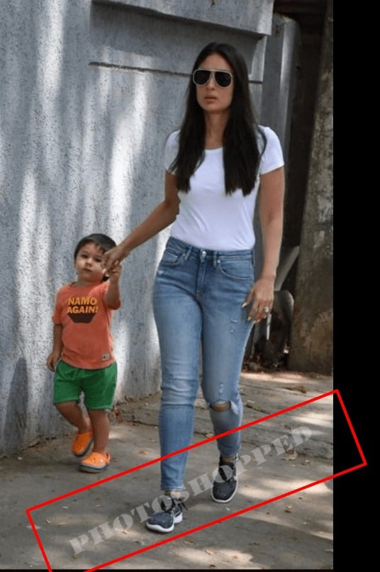 When both the photographs are juxtaposed together, the difference is clearly visible. In the original image, Taimur’s T-shirt does not have a ‘NaMo Again’ imprint.