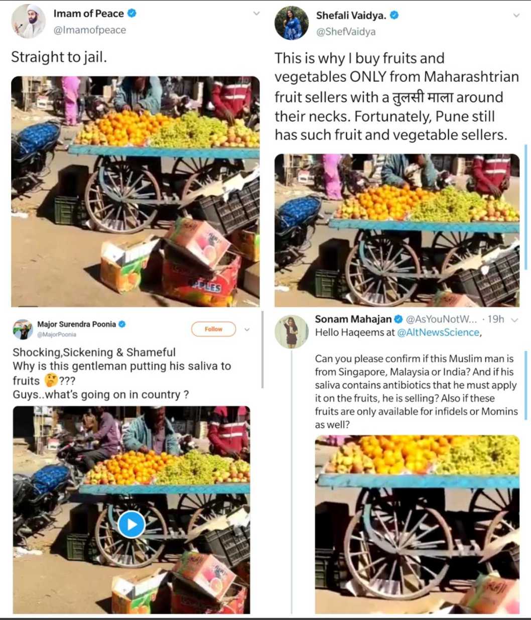 Video of Muslim Vendor’s Unhygienic Handling of Fruits Falsely Linked with Spreading Coronavirus