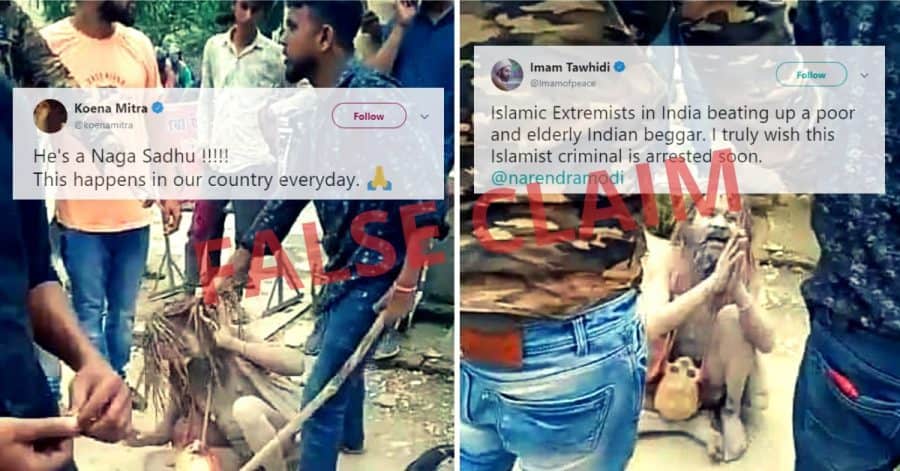 सोशल मीडिया पर एक व्यक्ति जिसे नागा साधु बताते हुए कुछ लोगों द्वारा पीटने का एक वीडियो वाइरल किया जा रहा है।