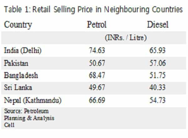 With prices close to or over Rs 70 and 80 per litre, diesel and petrol are more expensive today than they have ever been. The recent cut of 1 paisa by the Indian Oil Corporation (ostensibly by mistake), which was later corrected to a cut of 15 paisa each, only added insult to injury. As a number of memes doing the rounds on social media have illustrated, an international comparison with neighbouring countries shows that the petrol and diesel prices in India are the highest in the region.