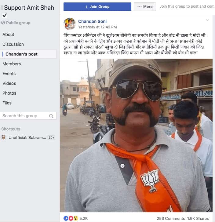An attempt was made to pass off a ‘lookalike’ sporting a handlebar moustache as Wing Commander Abhinandan Varthaman. An analysis of the facial features makes it amply clear that the man sporting the saffron scarf pledging his support to BJP and PM Modi is not Abhinandan. Moreover, IAF service rules clearly bar personnel from political participation. This coordinated attempt by pro-BJP Facebook pages to portray a serving officer of the Indian Air Force as actively campaigning for the party is a clear effort to mislead voters.