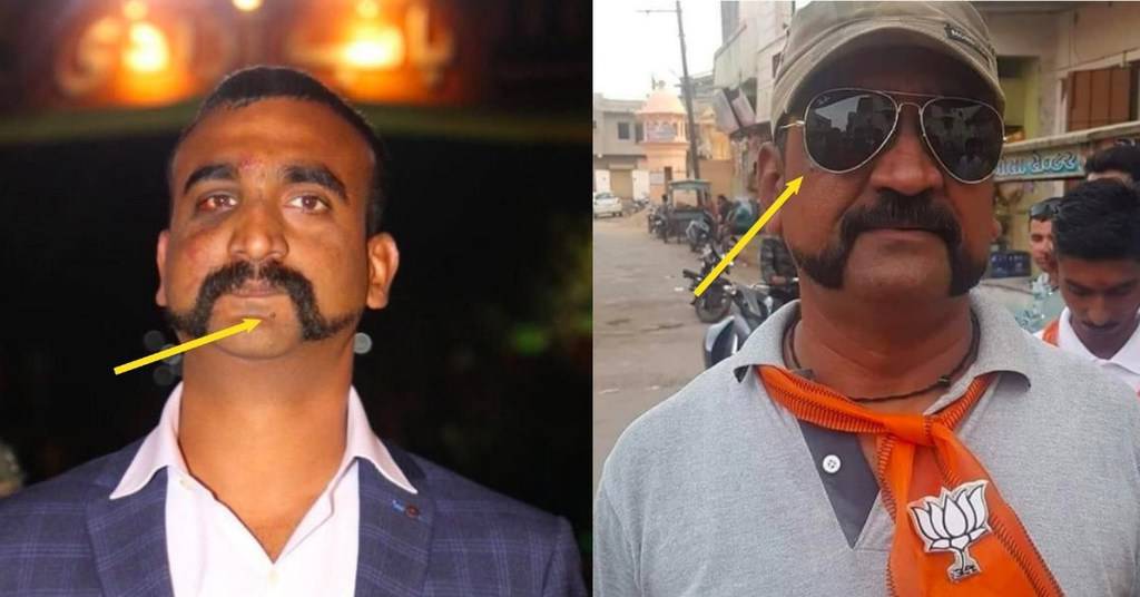 1) Abhinandan has a mole just under his lips which the man in the saffron scarf doesn’t.
