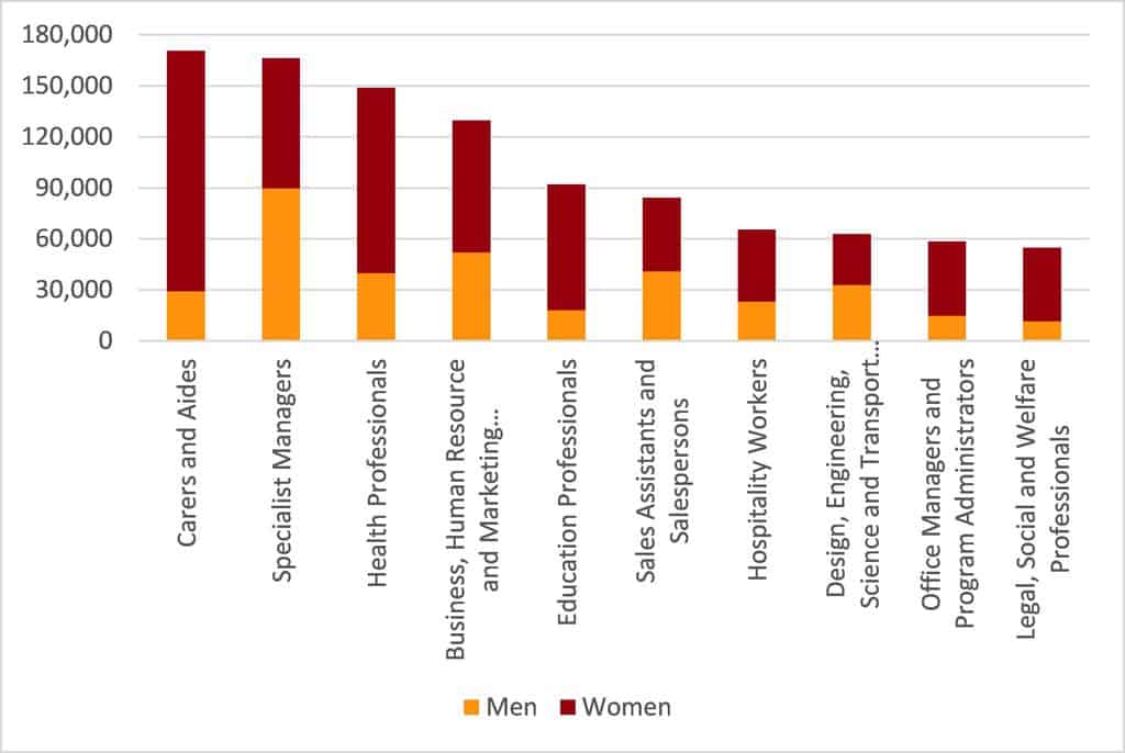 The strength of the Australian labour market is currently founded in service sectors that are generally dominated by women.
