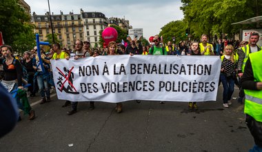 At the end of the march, trapped like rats, we scurry around the hamster wheel of a large roundabout in Place d’Italie. Each exit is lined by the police who lob rounds of gas canisters at us and baton charge intermittently. A mother and her teenage son are caught unawares in the midst of a bank holiday stroll. An old man, likewise there by accident, loses his wife in the panic. Paving stones are ripped up and broken into pieces to throw back. We watch hopelessly as a huddle of 20 officers charges in and drags out a man chosen at random. After a third and fourth bag search, we manage to leave the hamster wheel, only to find ourselves funnelled through interminably cordoned-off back streets.